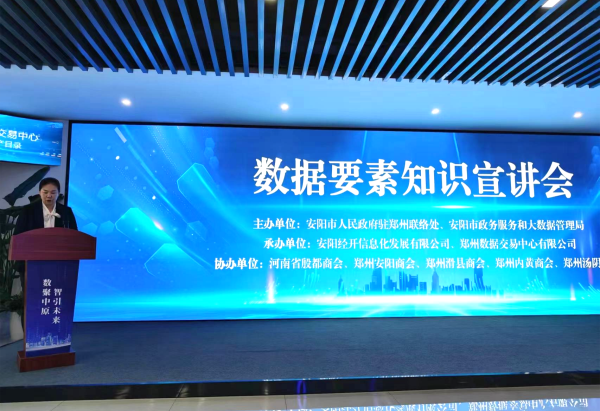 4月20日,集團(tuán)信息化公司和鄭州數(shù)據(jù)交易中心共同組織的“數(shù)據(jù)要素知識(shí)宣講會(huì)”在鄭州中原數(shù)據(jù)產(chǎn)業(yè)大廈隆重舉行。安陽市人民政府駐鄭州聯(lián)絡(luò)處主任張雙印,安陽市政務(wù)服務(wù)和大數(shù)據(jù)管理局副局長(zhǎng)常明華出席并發(fā)表講話。會(huì)上還邀請(qǐng)了河南省殷都商會(huì)等5家安陽籍商會(huì)成員及企業(yè)代表參加活動(dòng)。