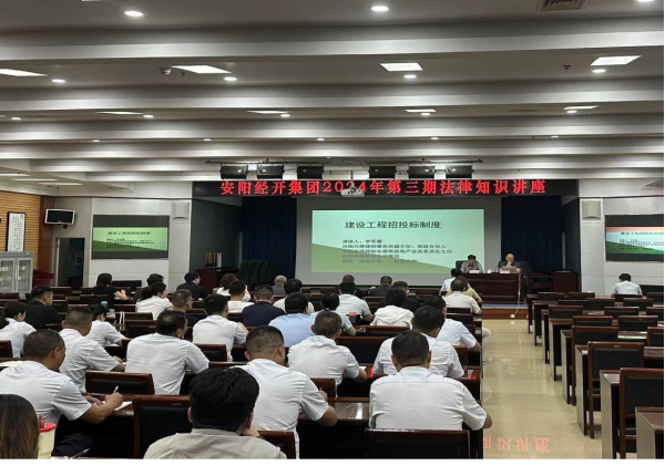 9月20日上午,安陽興鄴律師事務(wù)所李軍雷律師應(yīng)集團邀請在財政局綜合會議室,以“建設(shè)工程招投標(biāo)制度”為主題,進行法律知識講座。本次講座由集團黨委委員、監(jiān)事長謝俊生主持,集團全體員工參加了講座。