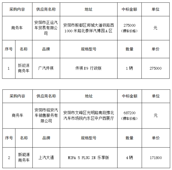 車輛采購中標公告