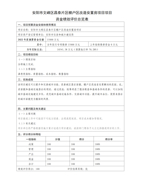 安陽市文峰區(qū)昌泰片區(qū)棚戶區(qū)改造安置房項(xiàng)目資金績效評價報(bào)告