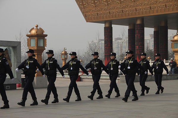 中國(guó)文字博物館特保大隊(duì)女子中隊(duì)執(zhí)勤中。